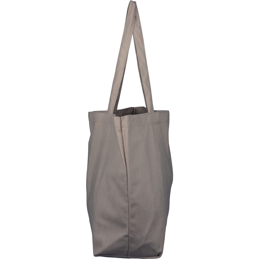 Kordbársony anyagból készült válltáska 2,5 × 60 cm hosszúságú fülekkel, 51 × 15 × 33 cm méretű tágas fő rekesszel és 10 × 10 cm méretű belső zsebbel. Mindennapi használatra alkalmas.