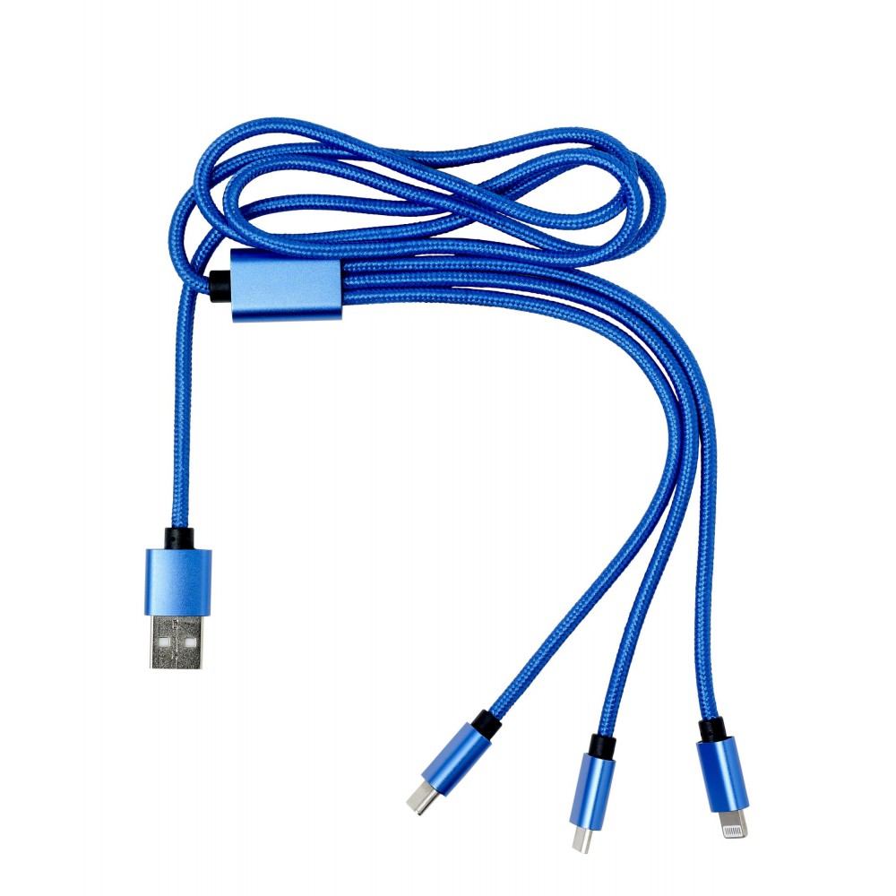 Töltőkábel többféle csatlakozóval, kobaltkék