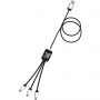 Világító logós töltőkábel gumi és fém bevonattal, három csatlakozóval (Type-C, Android, iPhone). Egyszerre akár három készülék is tölthető. Kábelek hossza (dugókkal együtt): 10 cm. Teljes kábelhossz: 1 méter. Az újrahasznosított PET műanyag kábel és csomagolás újrahasznosított papírból és újrahasznosított műanyagból készül.