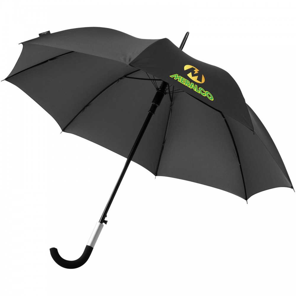 Exkluzív kivitelű esernyő automata nyitási funkcióval. Fém nyél és bordázat. A különleges kialakítású fogantyúnak köszönhetően felakaszthatja az asztal szélére. Gumibevonatú, kampós fogantyú alumínium díszítőelemekkel. Az ernyő színéhez illő tokkal.