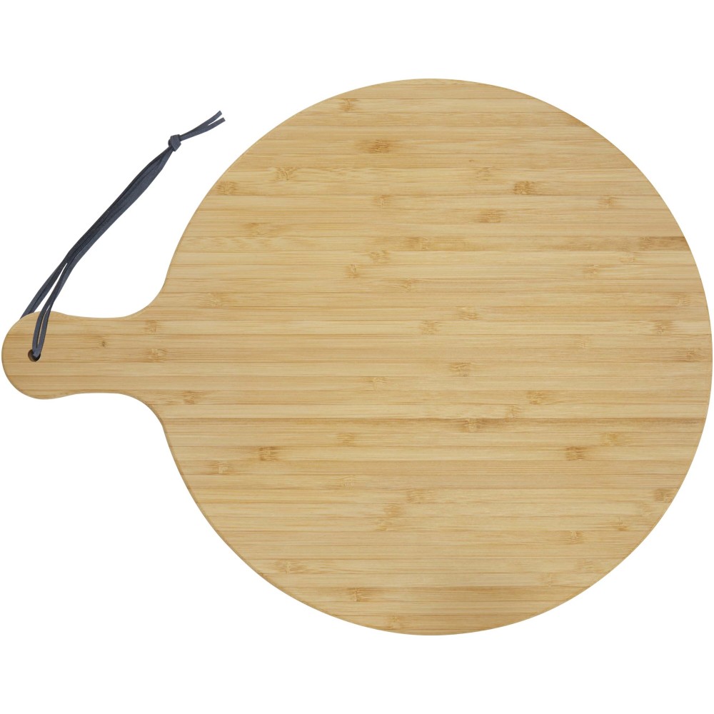 A Delys vágódeszka bambuszból készült, ideális a fenntartható választást preferáló cégek számára. A deszka átmérője: 30,5 cm. Fogó hossza: 8 cm. Deszka vastagsága: 1,4 cm. Mikrohullámú sütőbe vagy mosogatógépbe tenni nem alkalmas.