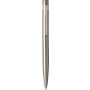 Újrahasznosított rozsdamentes acél, csavaros mechanikával rendelkező golyóstoll kék tollbetéttel. A toll hátoldalán az újrahasznosított rozsdamentes acél alapanyagot jelző logó található. Csomagolása nátronpapír díszdoboz.