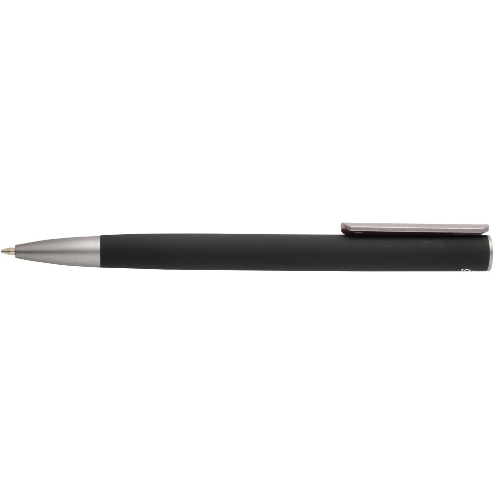 Golyóstoll újrahasznosított alumíniumból készült tolltesttel és ezüst bevonatú ABS műanyag klipsszel. Az újrahasznosított alumínium csökkenti a hulladék mennyiségét a lerakókban, hozzájárul a természeti erőforrások megőrzéséhez és a károsanyag-kibocsátás mérsékléséhez. Tinta színe: fekete. Íráshossz: 800 méter. Tollhegy mérete: 1,0 mm.