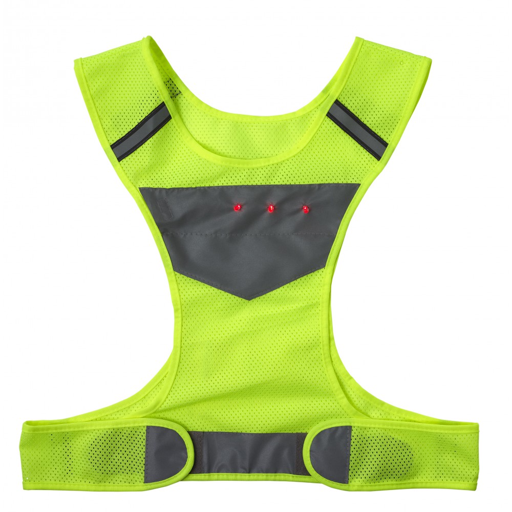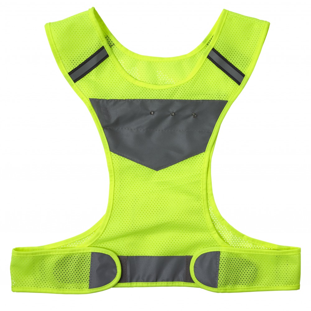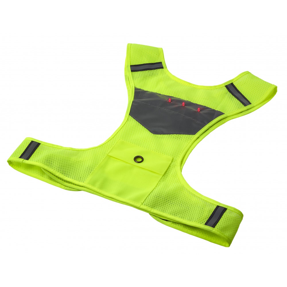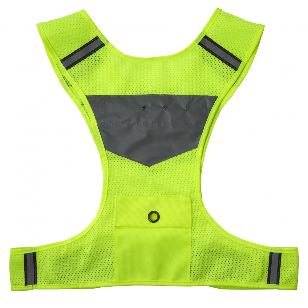 Fényvisszaverő hálós mellény 3 fénnyel. Az elemet tartalmazza. Promóciós célú felhasználásra. Nylon és poliészter.