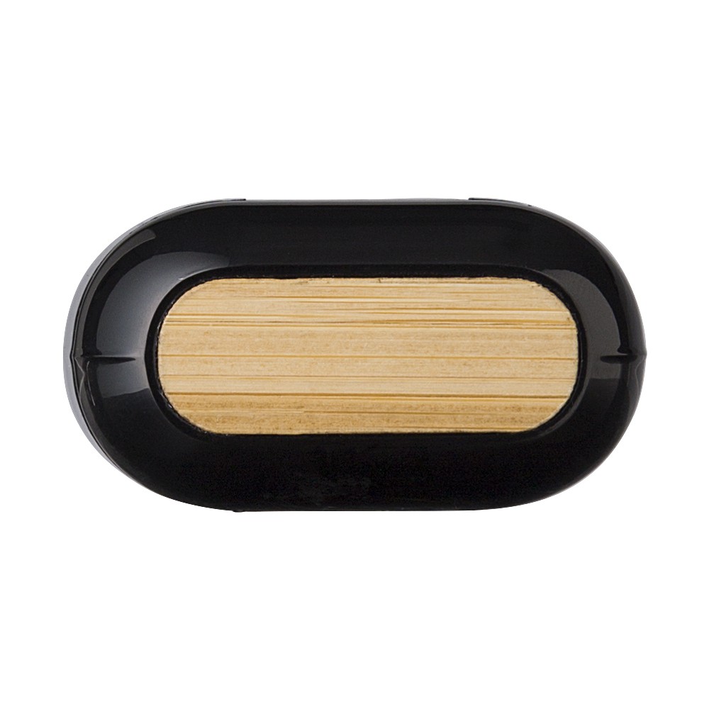 5.1 vezeték nélküli fülhallgató ABS anyagból, bambusz dekorációval a tetején. Fülhallgató kapacitása 30 mAh, tokja 200 mAh. 1 óra töltési idő, 6 óra lejátszási idő (zene), 4 óra lejátszási idő hívás funkcióban.