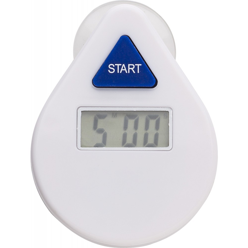 Digitális zuhanyidő-mérő tapadókoronggal és nyomógombbal az elülső oldalon. ABS műanyag.