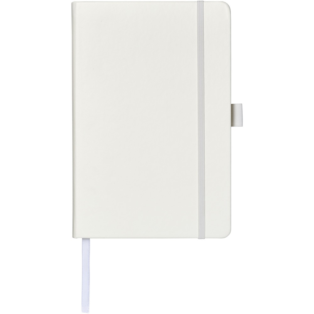Műbőr A5-ös (14,2 cm x 21,4 cm) jegyzetfüzet gumiszalaggal, szalagjelölővel, tollhurokkal és harmonika hátsó zsebbel. 96 db vonalas krémszínű lapot tartalmaz (80 g/m2).