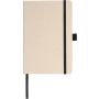 Cukornádból készült jegyzetfüzet (kb. A5 méret) 80 vonalas oldallal (80 g/m2), cukornádból készült papírral. Rugalmas pánttal, tolltartó hurokkal és könyvjelző szalaggal. Dombornyomott cukornád logóval a hátoldalon.