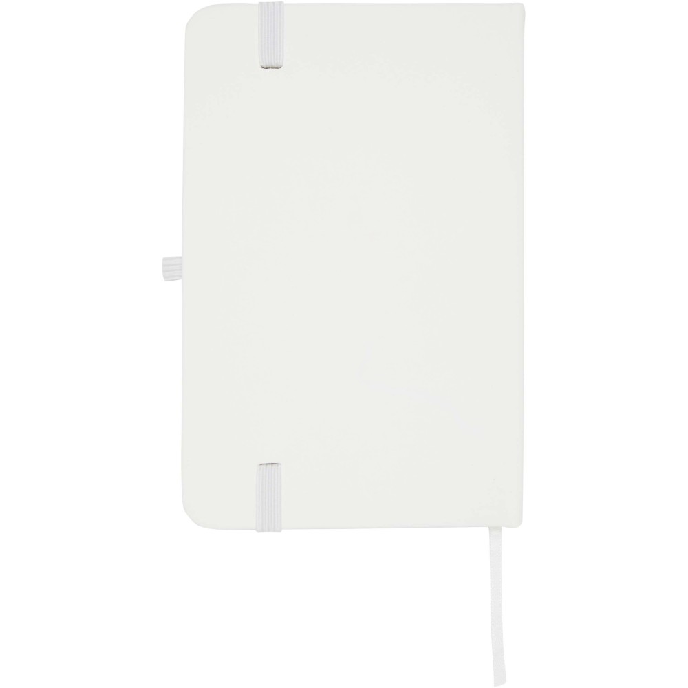 A Spectrum Plus A6 keményfedeles jegyzetfüzet lekerekített sarkokkal nemcsak az irodai mindennapok elengedhetetlen kelléke, hanem remek lehetőség márkád népszerűsítésére is. A jegyzetfüzet puha tapintású borítóval rendelkezik és 80 vonalas, krémszínű, 70 g/m2-es lapból áll, amely tökéletes gyors ötletek vagy hosszabb jegyzetek rögzítésére. A jegyzetfüzet tolltartó hurokkal, gumiszalagos záródással, könyvjelzővel és harmonikazsebbel van ellátva.