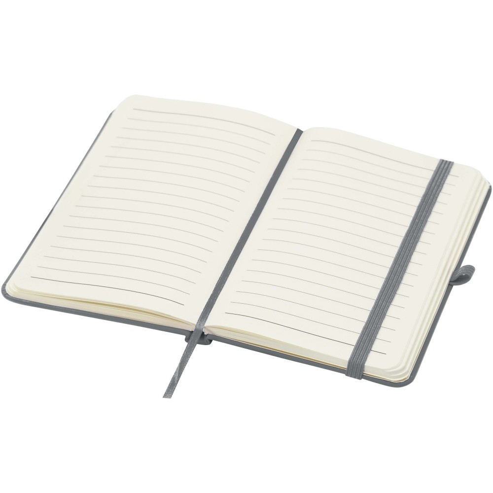 A Spectrum Plus A6 keményfedeles jegyzetfüzet lekerekített sarkokkal nemcsak az irodai mindennapok elengedhetetlen kelléke, hanem remek lehetőség márkád népszerűsítésére is. A jegyzetfüzet puha tapintású borítóval rendelkezik és 80 vonalas, krémszínű, 70 g/m2-es lapból áll, amely tökéletes gyors ötletek vagy hosszabb jegyzetek rögzítésére. A jegyzetfüzet tolltartó hurokkal, gumiszalagos záródással, könyvjelzővel és harmonikazsebbel van ellátva.