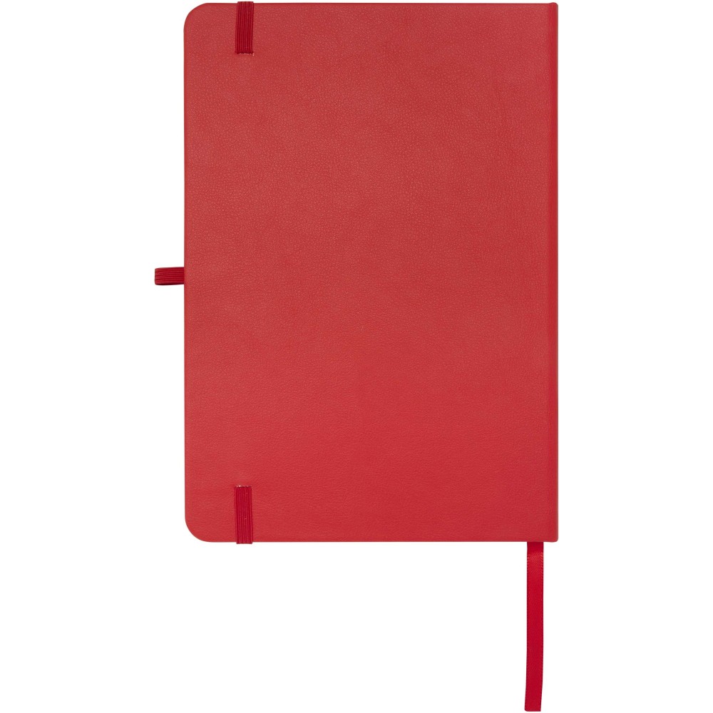A Teak A5 méretű, újrahasznosított karton keménytáblás jegyzetfüzet lekerekített sarkokkal nemcsak irodai alapdarab, hanem kiváló lehetőség a márka népszerűsítésére is. A jegyzetfüzet 96 darab 70 g/m2-es vonalas lapot tartalmaz és puha tapintású borítóval rendelkezik. Beépített tolltartó hurokkal, rugalmas zárópánttal és könyvjelzővel van ellátva.