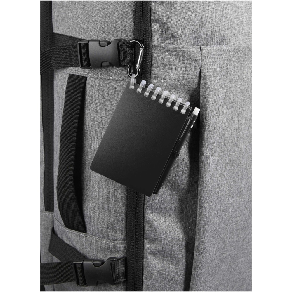 A Lig Mini jegyzetfüzet és toll szett kompakt és praktikus társ a gyors jegyzeteléshez útközben. A spirálfüzet puha, újrahasznosított műanyag borítással és 70 darab, 120 g/m2 súlyú, vízálló kőpapírból készült üres lappal rendelkezik, így ideális választás szabadtéri használatra is. A kerekített sarkokkal és beépített tolltartó pánttal ellátott kiegészítő tökéletesen követi a "mini" trendet, miközben teljesen funkcionális marad. A szetthez tartozó golyóstoll újrahasznosított ABS műanyagból készült, fekete tintával ír, íráshossza pedig 250 méter. A színben harmonizáló fémgyűrű segítségével a szett könnyen rögzíthető hátizsákra, táskára vagy kulcscsomóra, így tartós és hordozható megoldást nyújt a jegyzetek rögzítéséhez. A jegyzetfüzet mérete: 11 × 7,5 cm.