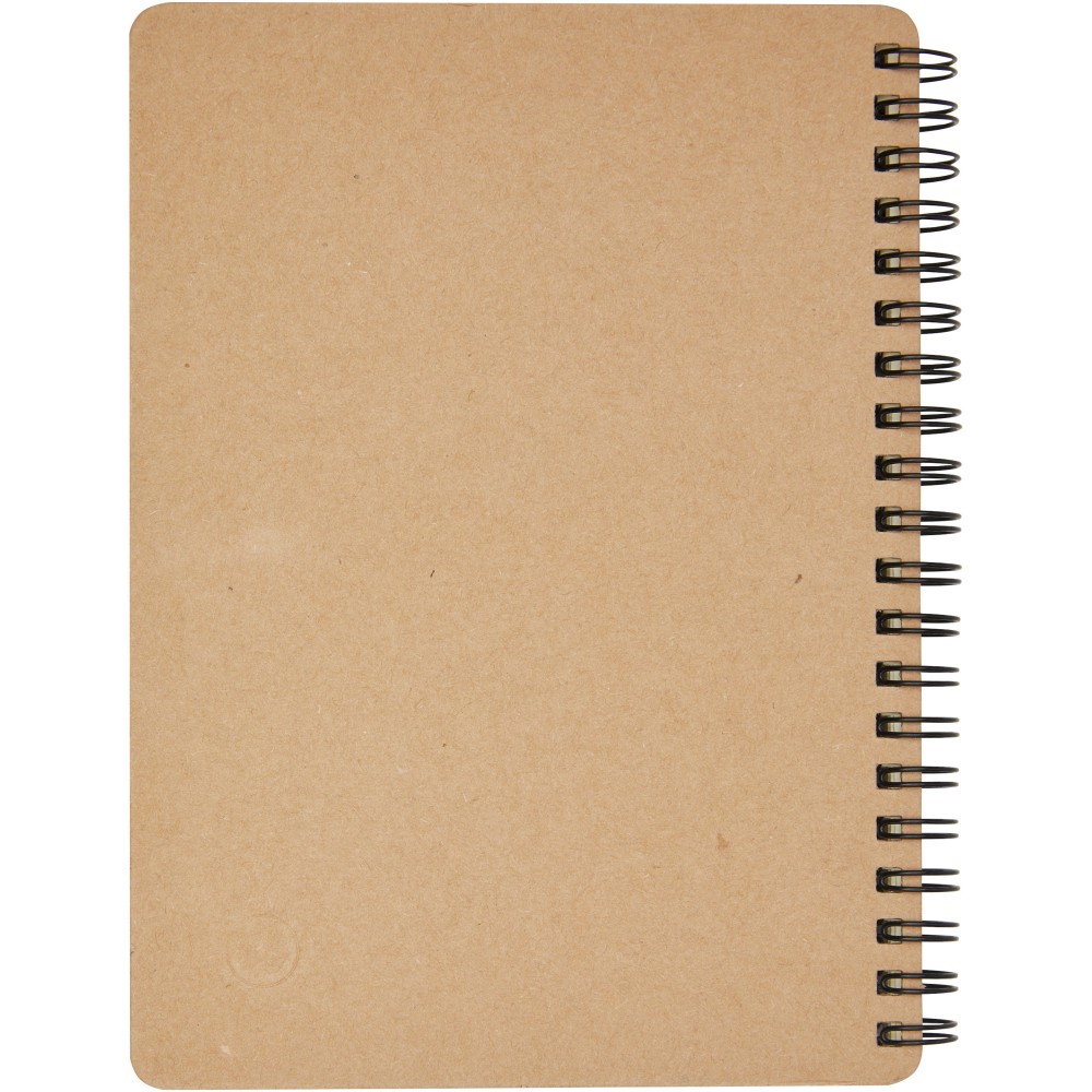 Újrahasznosított papírfedelű jegyzetfüzet 60 db újrahasznosított papírból készült A6-os méretű vonalas lappal, hozzáillő tollal. A toll fekete tollbetétel érkezik és külön van csomagolva.