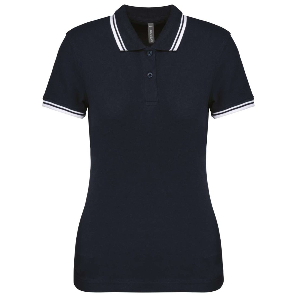 Kariban női rövidujjú galléros póló, Navy/White