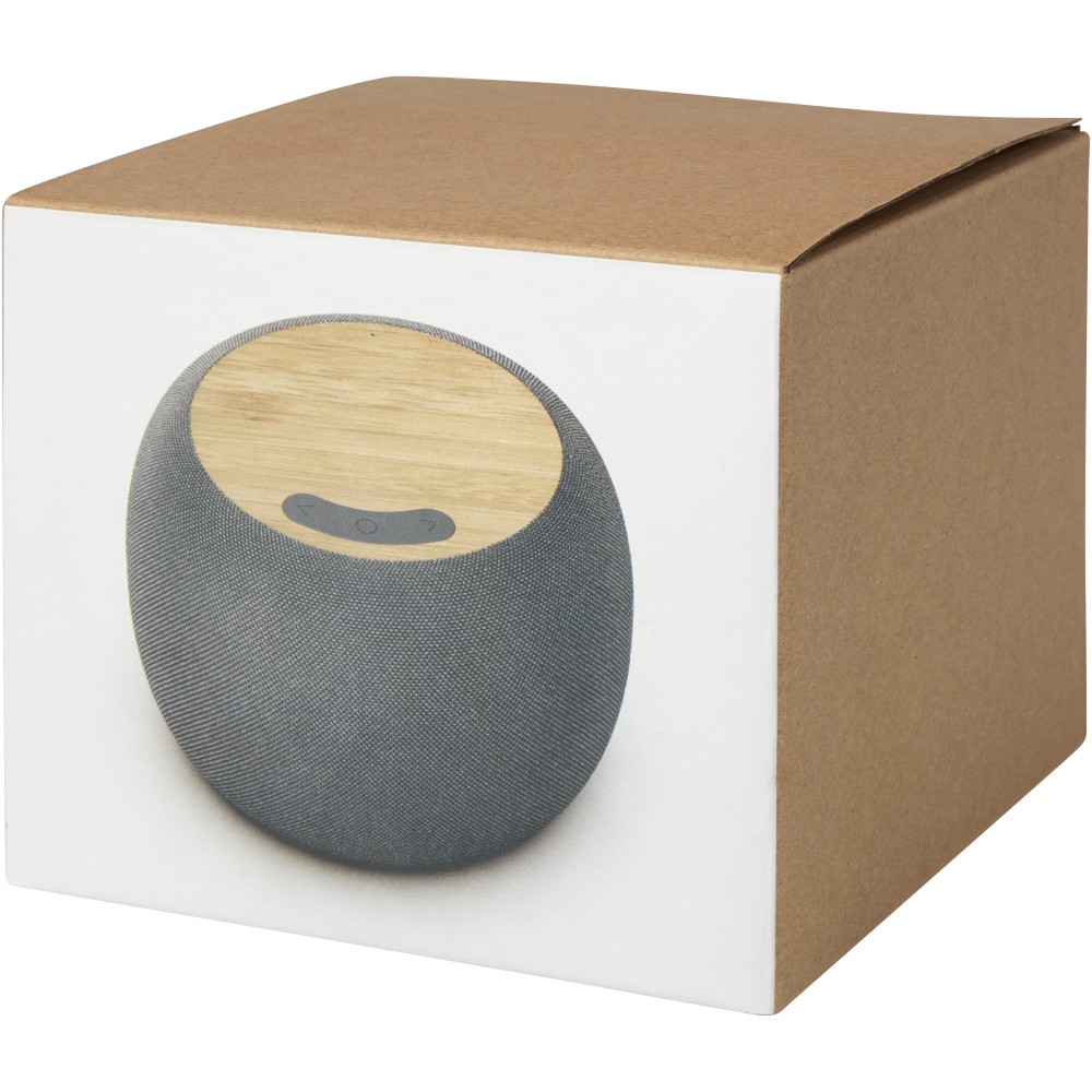 Bambusz/RPET Bluetooth hangszóró és töltőpad, natúr/szürke