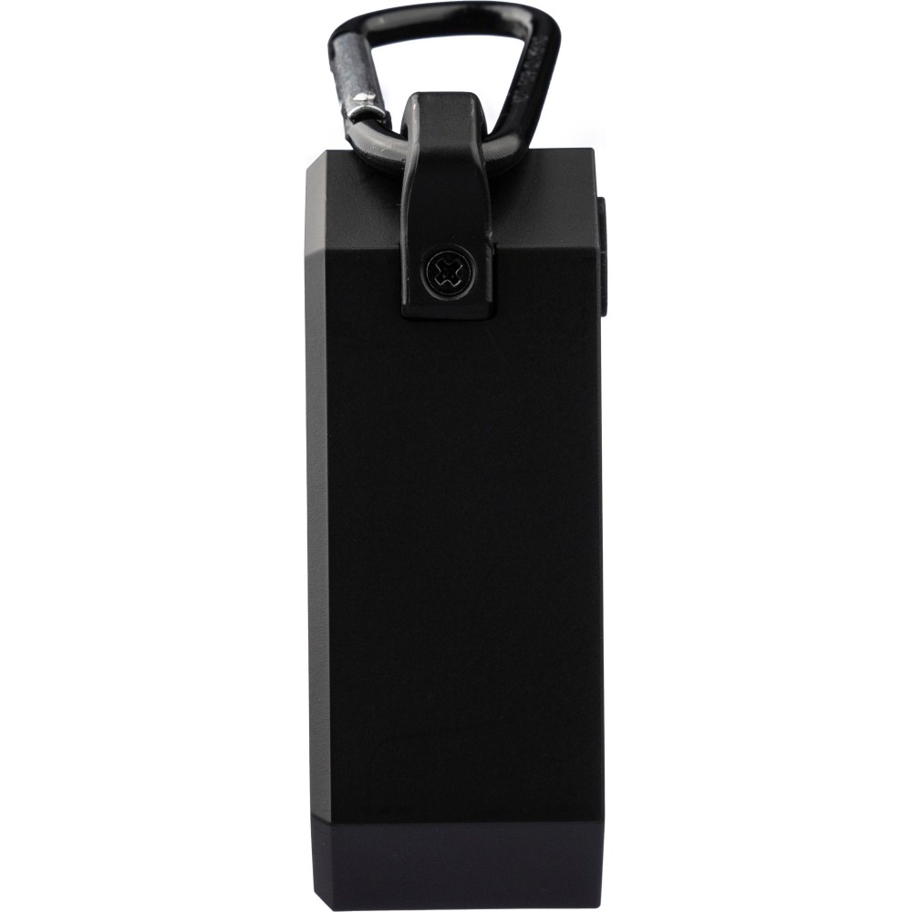 Hangszóró karabinerrel és műanyag klipsszel. IPX4 védelemmel. 3W teljesítmény, DC 5V bemenet, 300mAh beépített újratölthető akkumulátor, kb. 2 órás lejátszási idővel. Működési távolság: 15-20 méter, jel-zaj arány: 87 dB. Frekvenciatartomány: 100 Hz - 20 kHz. Tartalmaz egy 50 cm-es Type-C töltőkábelt. Vezeték nélküli kapcsolattechnológia: 5.2. Egyenként barna kartondobozba csomagolva.