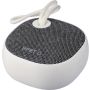 Újrahasznosított ABS és rPET anyagból készült vezeték nélküli hangszóró vékony nejlon hordozópánttal. 3 W teljesítmény, 300 mAh akkumulátor, 5.3-as vezeték nélküli technológia és 10 méteres hatótávolság. 30 cm-es fehér USB-C töltőkábellel. Az anyagon rPET logóval, az oldalán pedig újrahasznosított ABS logóval. Egyenként csomagolva, barna kartondobozban.
