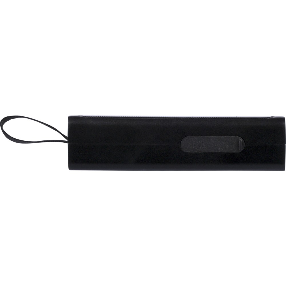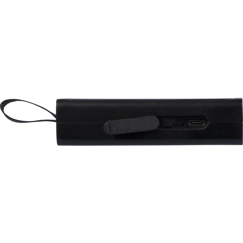 Újrahasznosított ABS-ből készült 5W teljesítményű hangszóró COB LED zseblámpával, szilikon hurokkal és 5.4-es vezeték nélküli technológiával. 500 mAh kapacitású akkumulátorral rendelkezik, 5V/500 mA bemenettel. Kültéri kialakítású, a terméktesten recycled (újrahasznosított) alapanyagra utaló logó található. Barna dobozba csomagolva.