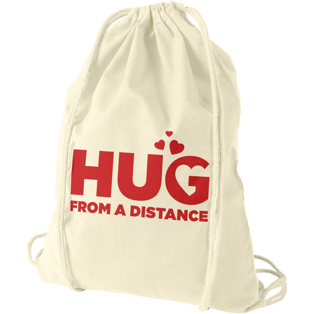 Húzózsinórral zárható nyitott fő rekesz. 100 g/m2 pamut.