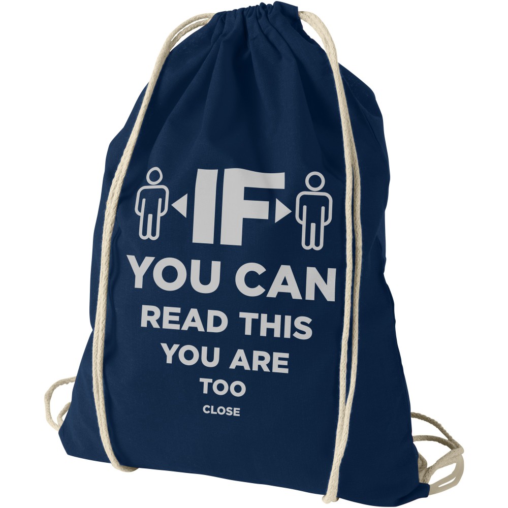 Húzózsinórral zárható nyitott fő rekesz. 100 g/m2 pamut.