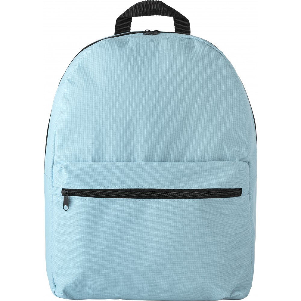 Hátizsák cipzáros elsőzsebbel, állítható, párnázott vállpánttal. 600D poliészter.