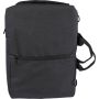 Hátizsák és laptoptáska 15"-es készülékhez. Kézipoggyász méretű. Hordozófüllel a tetején, állítható vállpántokkal és két oldalsó fogantyúval. Az állítható pántok a párnázás mögé rejthetők, így az oldalsó fogantyúkkal is hordozható. Tépőzáras laptoprekesszel és kis cipzáras zsebbel rendelkezik. Szellőző, párnázott hátoldallal. Terhelhetősége kb. 8 kg. RPET alapanyagra utaló címkével. Anyaga: 300D RPET poliészter.