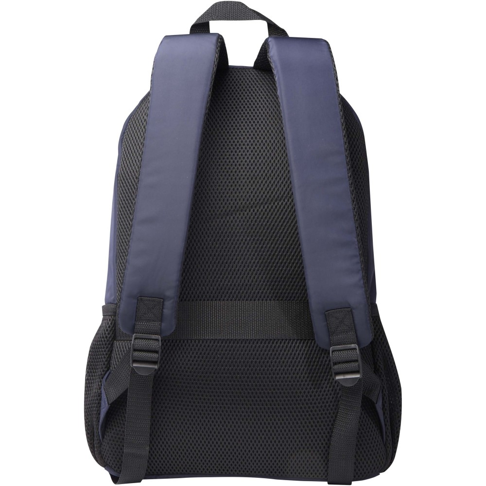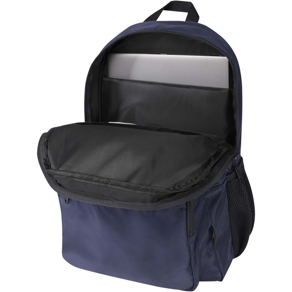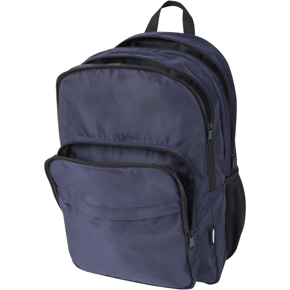A Trend Plus hátizsák GRS tanúsítvánnyal rendelkező újrahasznosított, puha és gyűrődésálló anyagból készült, minőségi RPET béléssel. A hátizsák 15?-os laptoprekesszel, rendszerező rekesszel, cipzáras elülső zsebekkel, oldalsó rugalmas hálós zsebekkel, valamint légáteresztő hátpárnázattal és bőröndpánttal rendelkezik. Az állítható vállpántok maximális kényelmet biztosítanak. Űrtartalma: 20 liter. Teherbírás: akár 10 kg. PVC-mentes.