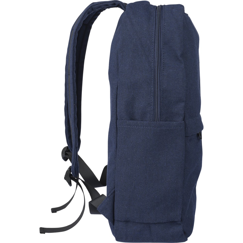 Hátizsák 330 g/m2 újahasznosított policotton anyagból, 210D poliészter béléssel. Egy nagy cipzáras rekesszel, párnázott 15"-es laptoptartó résszel, két belső és két külső rekesszel, oldalzsebbel és egy kicsi, cipzáras elsőzsebbel. Párnázott, állítható vállpánttal és hordozófüllel. Űrtartalom: 14 liter, teherbíró képesség: 13 kg. Címkét tartalmaz.