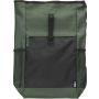 600D rPET poliészter roll-top hátizsák. PU bevonat teszi vízlepergetővé. Rejtett cipzáras első zsebbel, hálós oldalzsebekkel, 15 -es laptop számára kialakított tárolórésszel, 5 tárolórekesszel, állítható vállpánttal. Kapacitása 25 liter, teherbírása 15 kg. Oldalán rPET címkével.