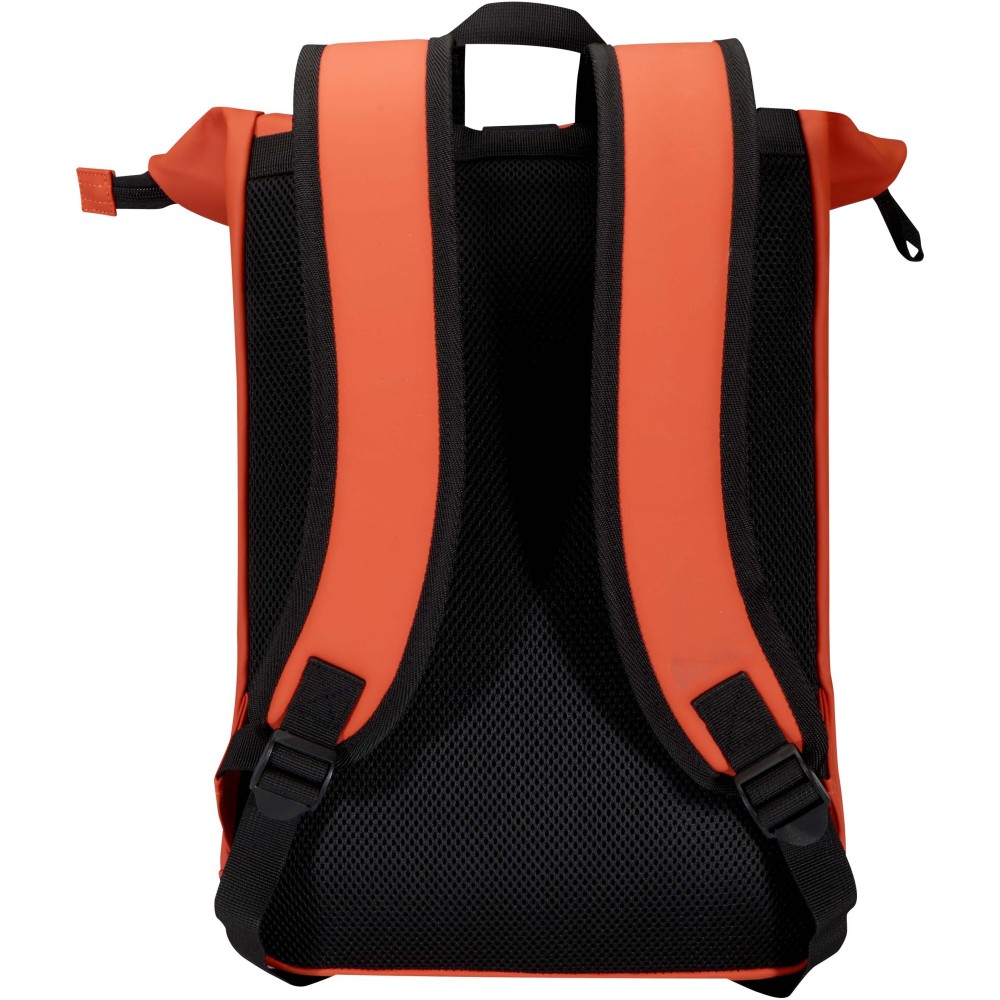 Prémium, újrahasznosított PU bőrből készült, színben harmonizáló RPET béléssel, ez a rolltop hátizsák modern megjelenést és hosszú élettartamot kínál. Vízlepergető felülete megóvja a tartalmát esőtől és nedvességtől, míg a feltekerhető zárórész rugalmas pakolást tesz lehetővé - ideális laptop hátizsákként ingázáshoz, utazáshoz vagy edzőterembe. Belsejében párnázott rekesz található, amely akár 15,6" laptopot is biztonságosan tárol, valamint egy cipzáras zseb a technikai eszközök és mindennapi kellékek rendszerezésére. A külső részen vízálló cipzárral ellátott elülső zseb biztosít gyors és biztonságos hozzáférést, míg a párnázott, állítható vállpántok és a légáteresztő hátpanel egész napos kényelmet nyújtanak.