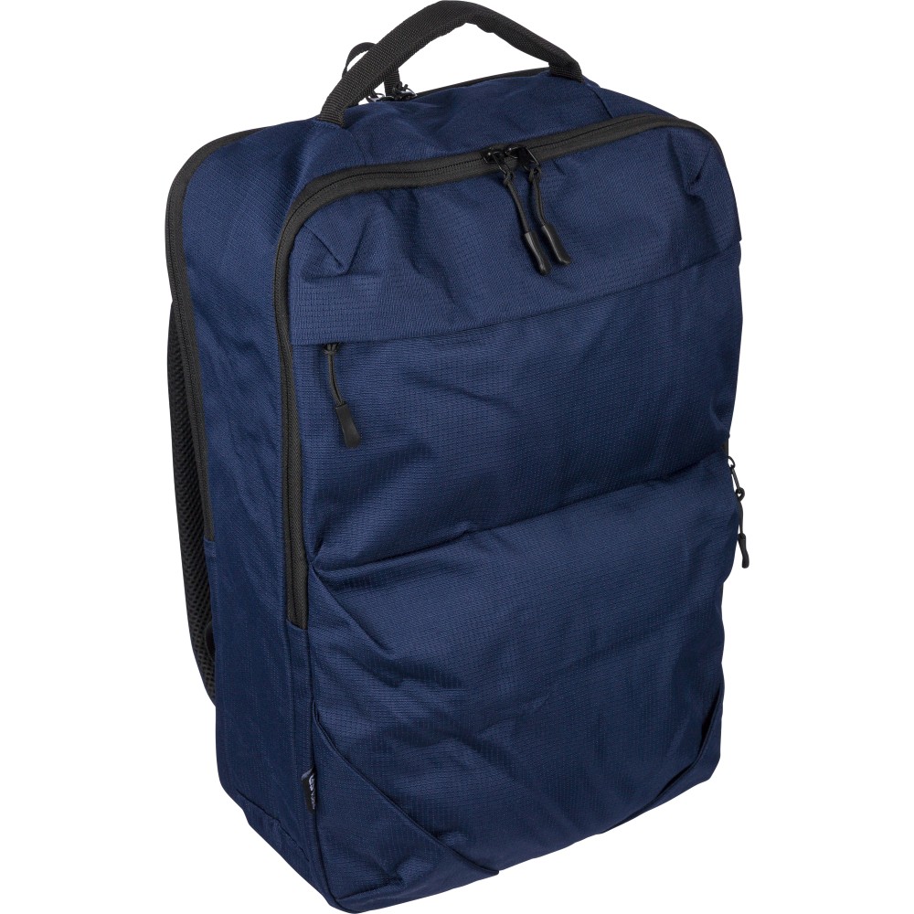 RPET 300D Ocean Bound anyagból készült hátizsák, amely újrahasznosított óceáni műanyagból készül, tartós és texturált felületű kialakítással. 20 literes űrtartalommal rendelkezik, két nagy cipzáras rekesszel, párnázott 15 hüvelykes laptoprekesszel, két elülső zsebbel, hálós oldalzsebbel és felső fogantyúval. Szellőző vállpántokkal, párnázott hátoldallal és bőröndre rögzíthető pánttal ellátva, a terméken Ocean Bound Plastic alapanyagra utaló címke található.