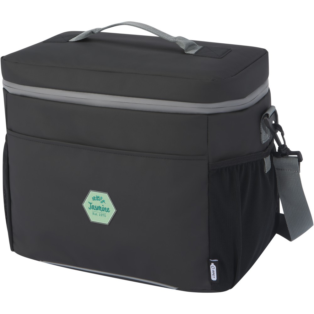Vízálló 20 dobozos hűtőtáska, amely GRS tanúsítvánnyal rendelkező újrahasznosított anyagokból készült, beleértve a cipzárakat is. Tágas, cipzáras rekesszel rendelkezik, amely élelmiszer-biztonságos és extra vastag, nagy sűrűségű hőszigetelő PEVA és habszigeteléssel van bélelve, így az italok és frissítők órákig hidegen maradnak. Emellett 2 hálós zsebbel és egy nyitott elülső zsebbel rendelkezik további tárolási lehetőségként. A hevederes fogantyú és az állítható és párnázott vállpánt kényelmessé teszi a hordozást. A GRS újrahasznosított anyagai közé tartozik a főszövet, a bélés, a hevederek és a cipzárak. Nem mosható. Űrtartalom: 22 liter. PVC-mentes.