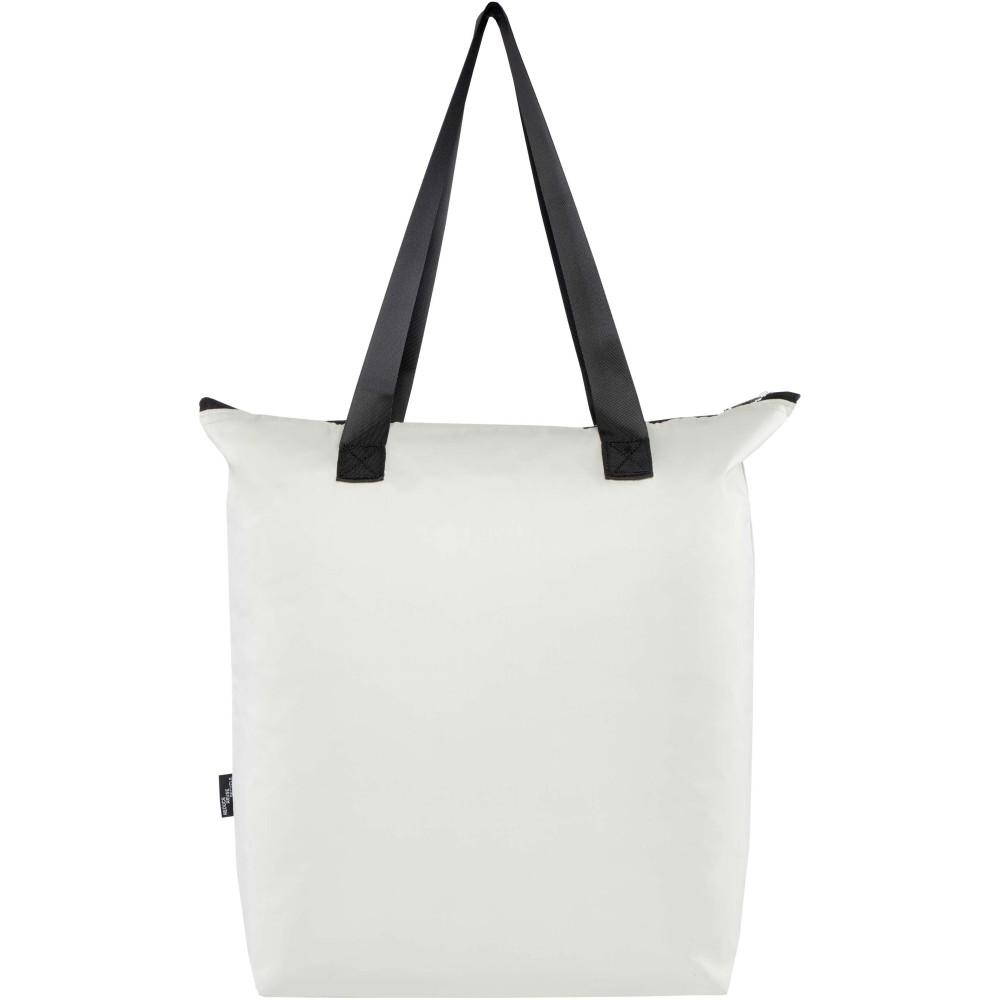 Ez a könnyű, mégis tartós hűtőtáska a kényelem és praktikusság jegyében készült, és könnyedén a kompakt tasakba hajtható, amelyen hurok található a kényelmes hordozás érdekében - tökéletes piknikhez, bevásárláshoz vagy szabadtéri programokhoz. Cipzáras, alumínium fóliával bélelt főrekesszel, nyitott elülső zsebbel és két hosszú, sima szövött anyagból készült fogantyúval rendelkezik. PVC-mentes újrahasznosított poliészterből készült. Űrtartalma: 15 liter.