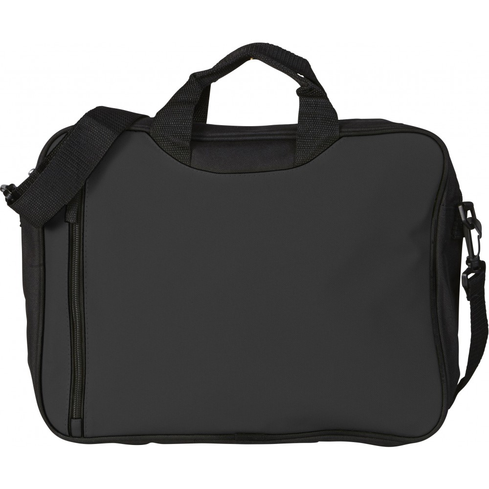 Irat- és konferenciatáska állítható vállpánttal, függőleges cipzáras zsebbel. 600D poliészter.