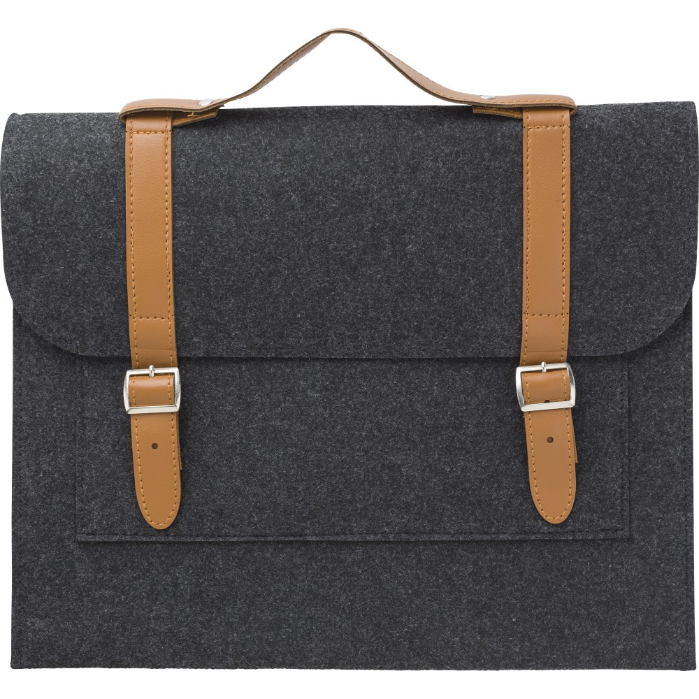 RPET filcből készült irattáska PU részletekkel. Egy nagy rekesz. A táska két csattal záródik.