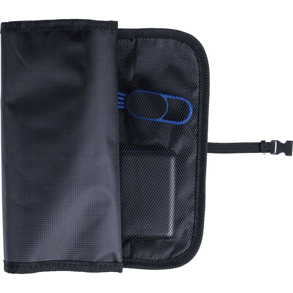 Feltekerhető táska műanyag csattal. Több zsebbel és cipzáras rekesszel rendelkezik a töltőkábelek vagy eszközök tárolására. Anyaga: 1680D poliészter.