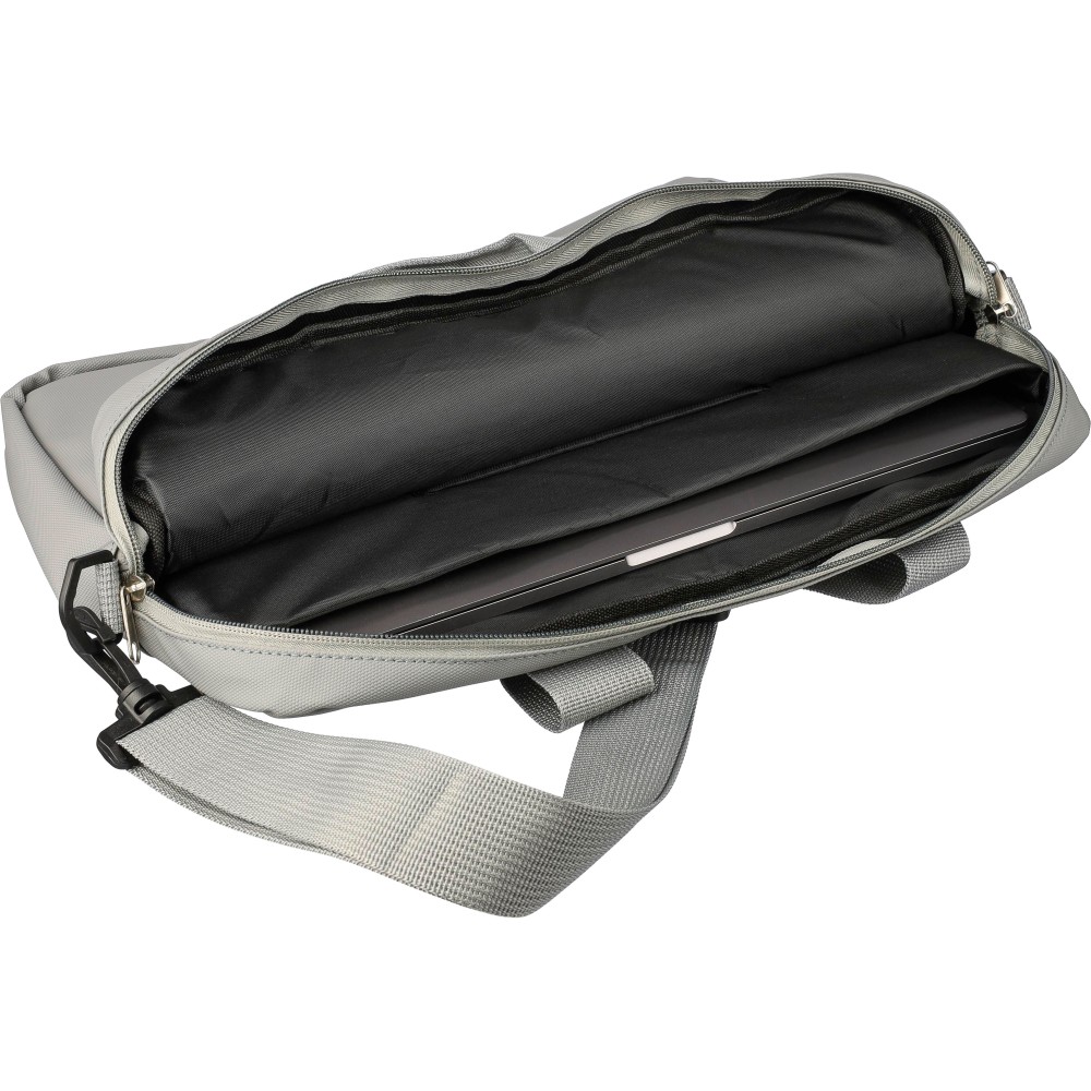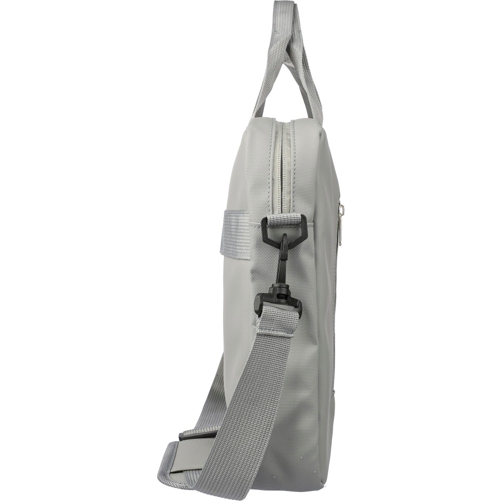 Laptoptáska 15"-es laptophoz PU anyagból, két cipzáras első zsebbel, egy nagy cipzáras rekesszel és tépőzáras laptop résszel, valamint több belső zsebbel. Állítható vállpántokkal és két fogantyúval rendelkezik. Vízlepergető. Anyaga: PU.