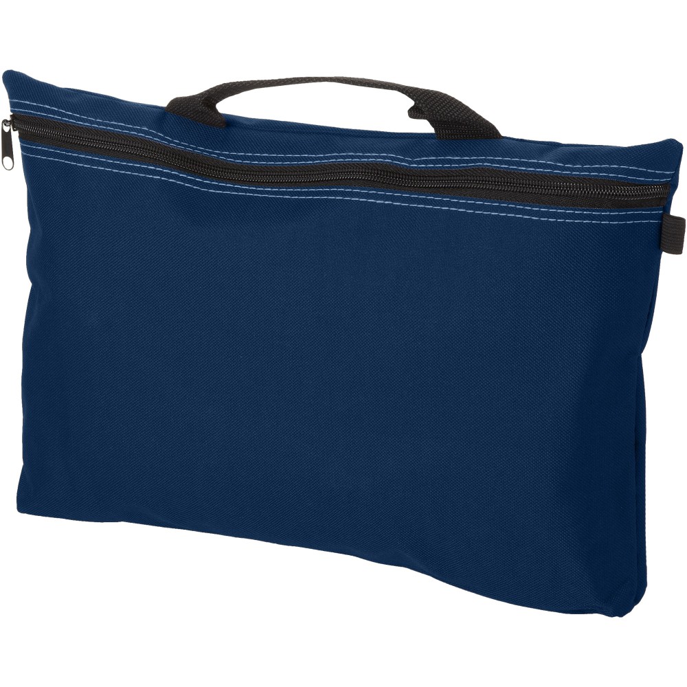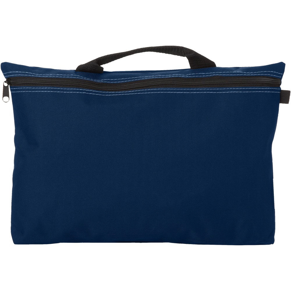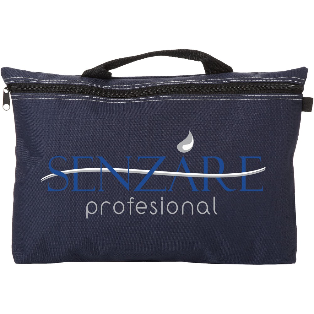 Konferenciatáska erős füllel, cipzárral zárható, tolltartó hurkokkal a táska belsejében és kívül is. Ideális A4-es méretű kiadványokhoz. 600D poliészter.