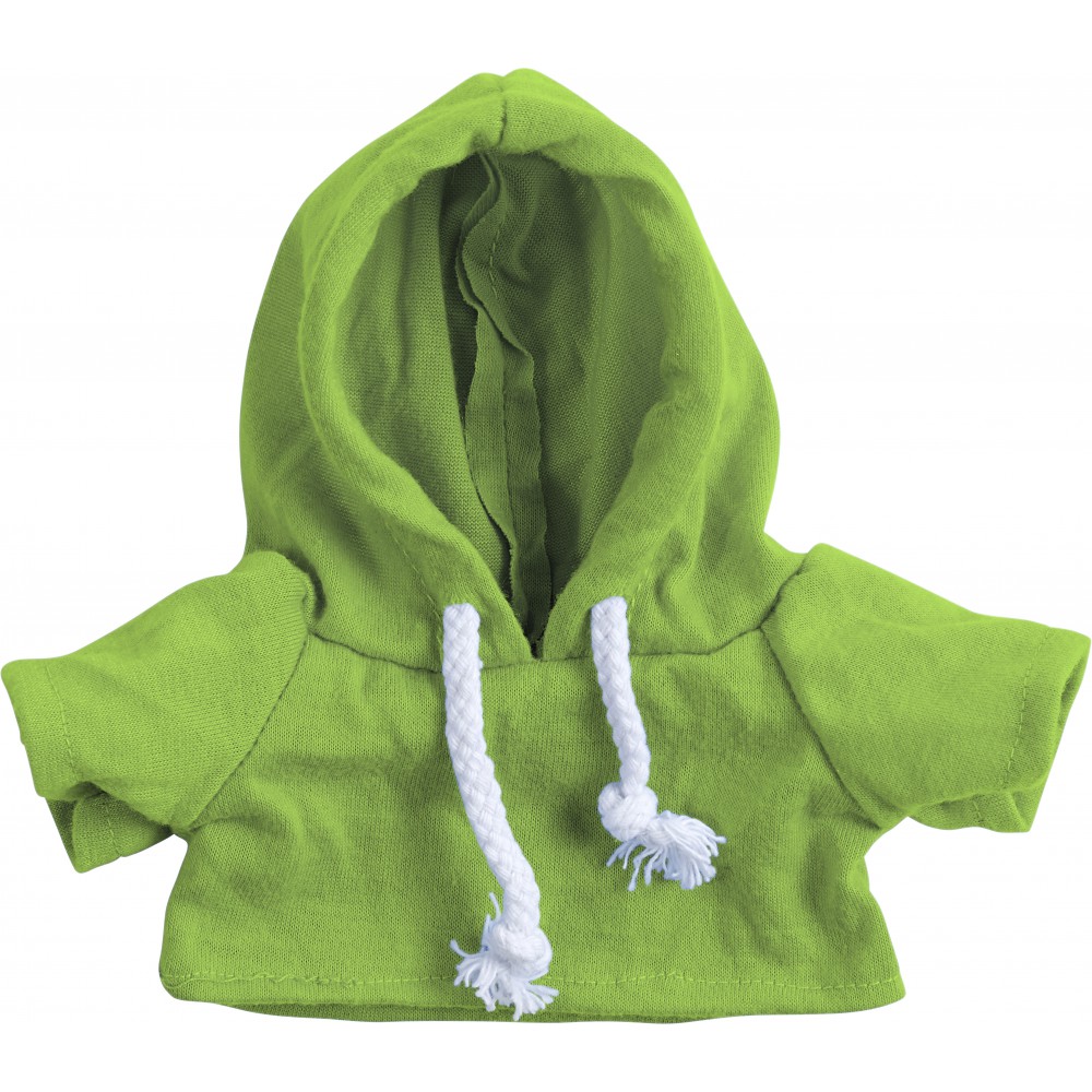 Plüssmackó kapucnis pólóban, zöld