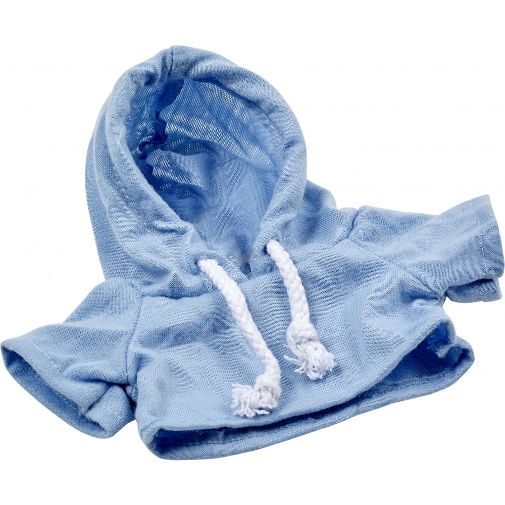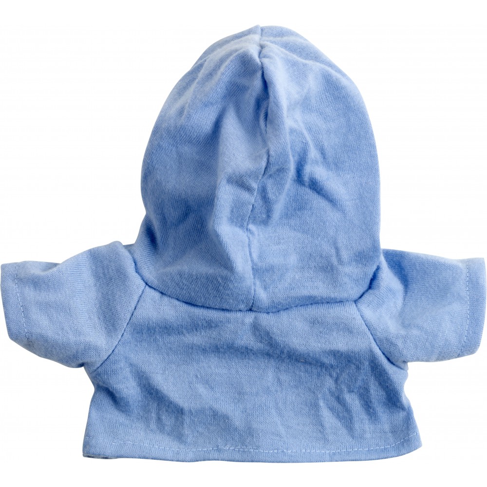 Plüssmackó kapucnis pólóban, világoskék