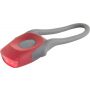 Műanyag kerékpáros lámpa két LED-del, szilikon rögzítőpánttal, kétféle villogó funkcióval és ki/bekapcsoló gombbal. A fehér színű lámpa első világításnak, a piros pedig hátsó világítás céljára alkalmas. Az elemet tartalmazza.