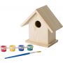 Fa madárodú festőkészlettel, 4 színű festékkel és ecsettel. Fa.