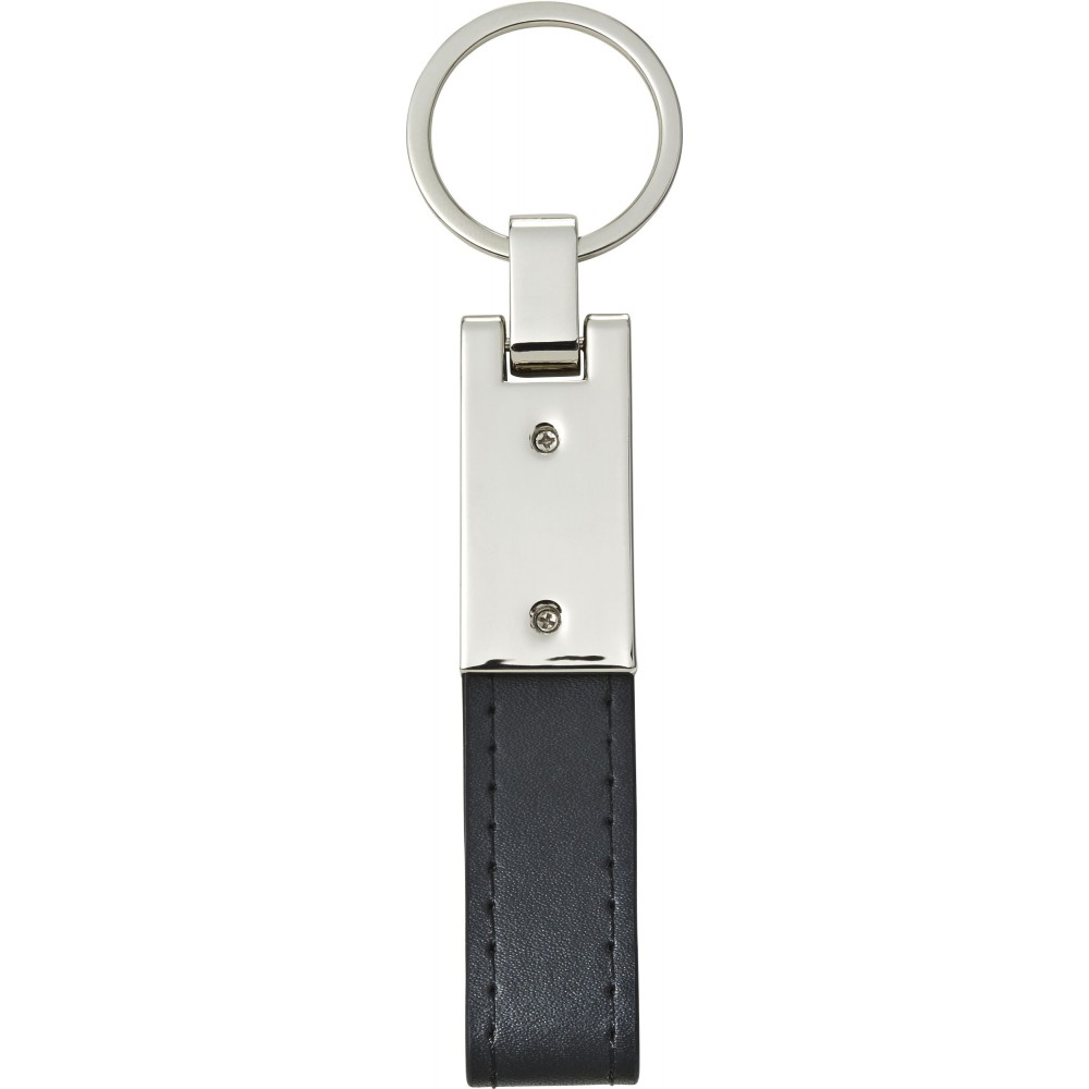 Ezüstözött kulcstartó PU hurokkal. Csomagolása fekete díszdoboz. PU, acél
