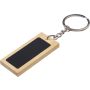 Kulcstartó gumis felületű, rozsdamentes acél gravírozólappal. A gravírozás utáni szín fényes króm. Egyedi csomagolásban, barna kraftpapír tokban. Anyaga: bambusz.