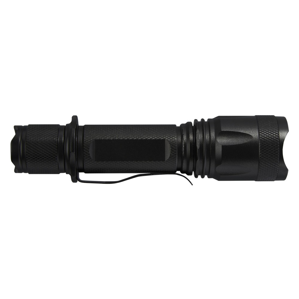 Soha nem merül le az akkumulátor ezzel az újratölthető, nagy teljesítményű taktikai alumínium zseblámpával. A tömör fekete alumíniumötvözet burkolat profi megjelenést biztosít, 1 méteres ütésállósággal. A zseblámpa övcsipesszel rendelkezik a könnyű hordozhatóság érdekében, és az IPX4 besorolású, fröccsenésálló. Az 5 W-os LED 300 lumen fényerőt állít elő 3 órán keresztül, sugártávolsága pedig 200 méter 5 különböző fénybeállítással: magas, közepes, alacsony, villogó és SOS. A nagy teljesítményt egy beépített lítium akkumulátor adja, amelynek kapacitása 2000 mAh. Rejtett USB csatlakozó a töltéshez, amely a lámpa felső részének kihúzásakor válik elérhetővé. A zseblámpa mérete 14,5 x 3,4 cm, súlya pedig mindössze 170 gramm. Használati útmutatóval adjuk, és 17,5 x 6 x 4 cm-es újrahasznosított karton díszdobozba csomagoljuk. Az alumínium testre lézeres gravírozás javasolt.