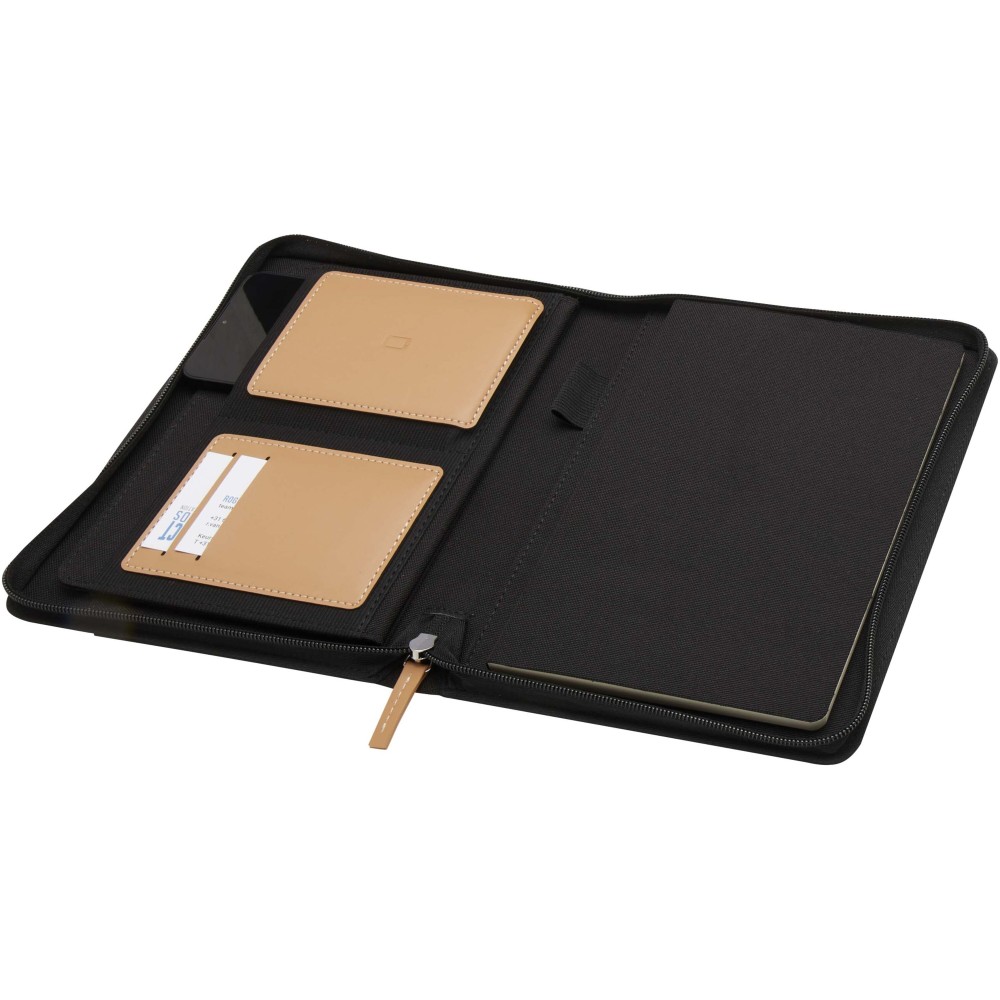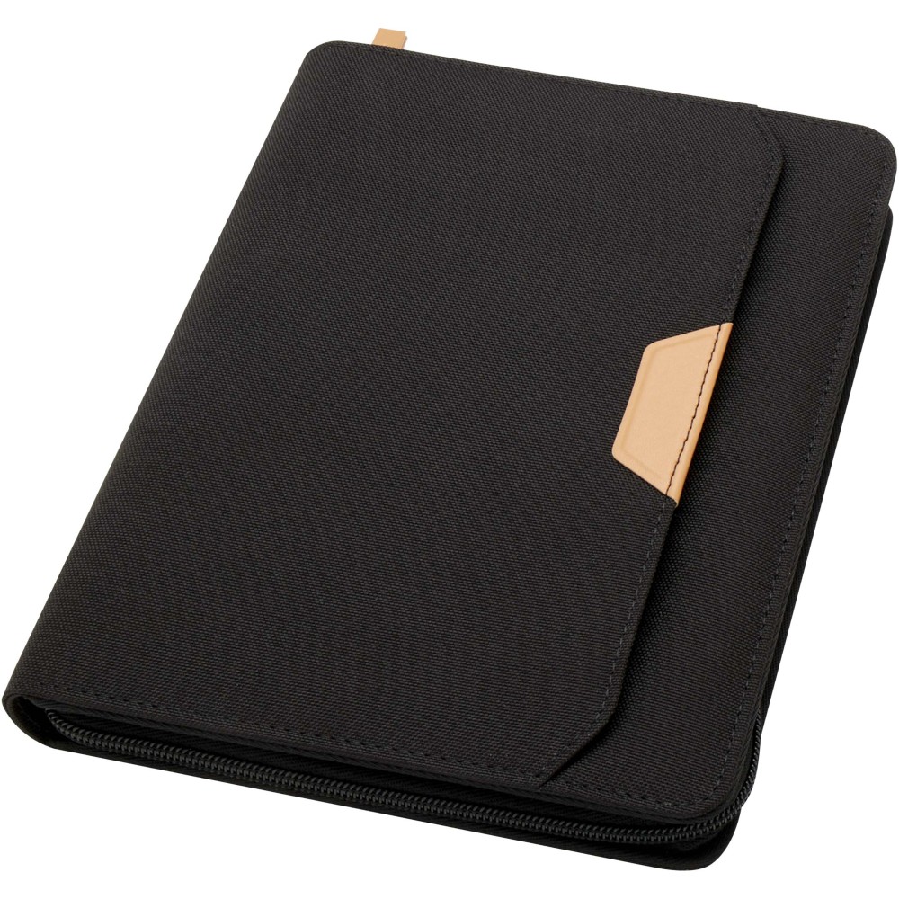 A Nomumi A5 portfólió lekerekített sarkú, újrahasznosított műanyagból készült, praktikus irodai alapdarab. 64 db krém színű, 80 g/m2 vonalas lapot tartalmaz, cipzáros záródással, tollhurokkal és egy zsebbel rendelkezik.