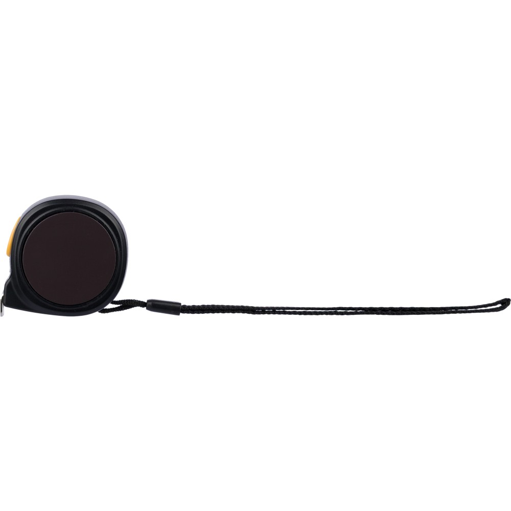 ABS műanyagból készült mérőszalag mágneses oldallal, 3 m hosszúságú és 16 mm szélességű fém szalaggal, centiméter- és inch-beosztással. Felül elhelyezett nyomógomb a rögzítéshez/kioldáshoz, valamint poliészter csuklópánt. Egyenként csomagolva illusztrációval ellátott barna kartondobozba.