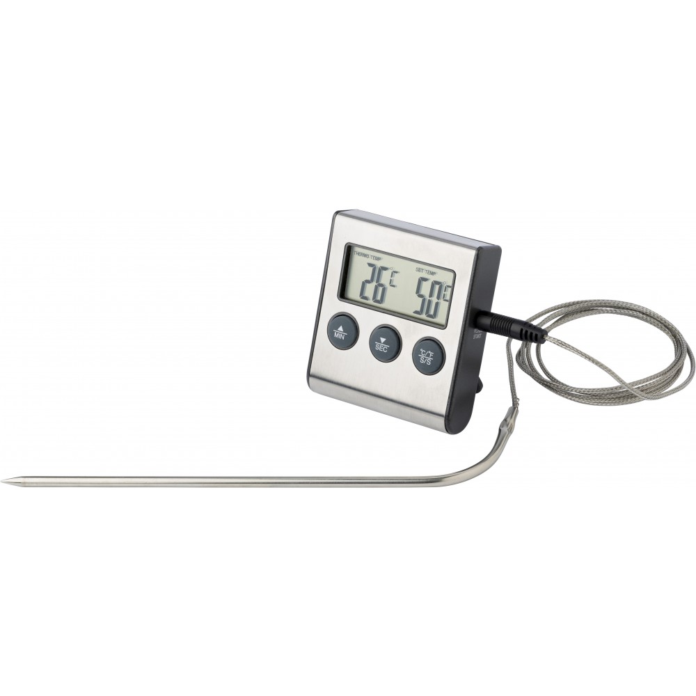 Időmérő és időzítő funkcióval ellátott húshőmérő mágnessel, állvánnyal, ABS műanyagból. Az elemet tartalmazza.