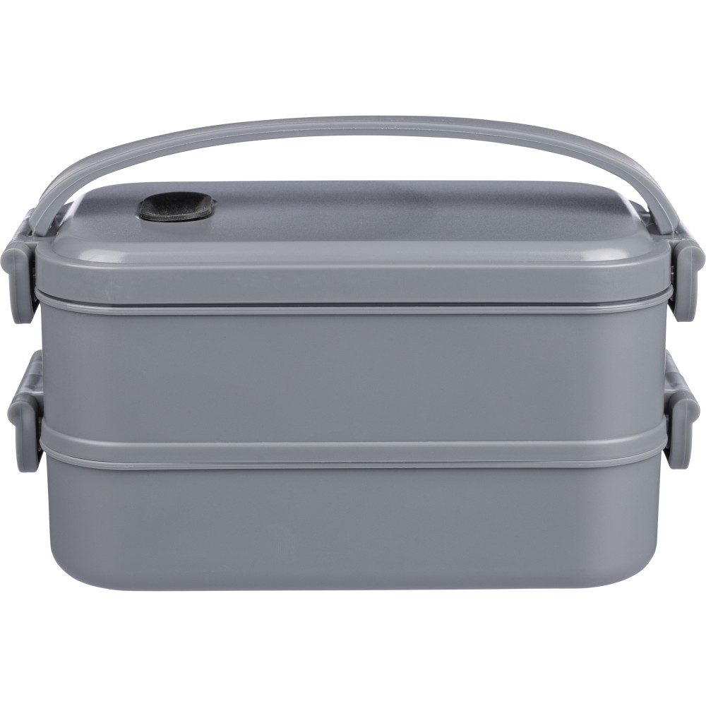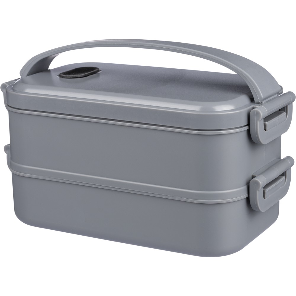 1600 ml-es PP ételtároló doboz 2 db, egyenként 800 ml-es résszel. Szilikon szeleppel a mikrohullámú sütőben történő melegítéshez, csatos záródással és szilikon hordozófüllel. Mosogatógépben tisztítható.
