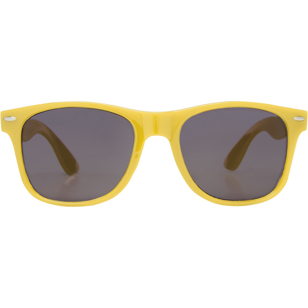 Ez a fenntartható, retro napszemüveg ideális promóciós ajándék nyári fesztiválokon, rendezvényeken vagy más napsütéses szabadtéri tevékenységek során. Az újrahasznosított PET műanyagnak köszönhetően a napszemüveg könnyű és kényelmes viselet. Ez a szemüveg megfelel az EN ISO 12312-1 szabványnak, UV400-as lencsékkel rendelkezik, amelyek 3. kategóriájúak, így tökéletes választás az erős napfény elleni védelemhez.